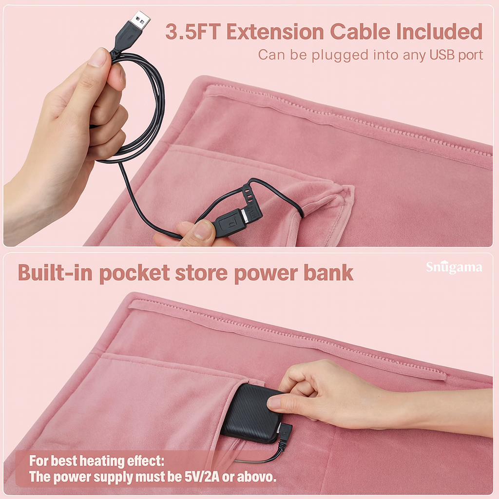 The included 20,000mAh portable battery powers your CozyPod for 6–8 hours depending on the heat setting you choose. On the lowest setting, you’ll get the longest runtime.